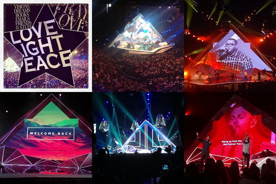 I know I have been making a thing of HILLSONG UNITED’s recent tour to the USA in June. But just when I thought the pyramid concept was just a one off with the United band, I find myself staring in disbelief at a new stage production that includes PYRAMIDS, and worse. This is all part of the opening to the recent HILLSONG COLOUR CONFERENCE 2013, where flashing lights, dancers, pyramid shapes, celestial lights and loud dramatic music are played to an enthralled audience, captivated by the sight and sounds of this latest HILLSONG event.