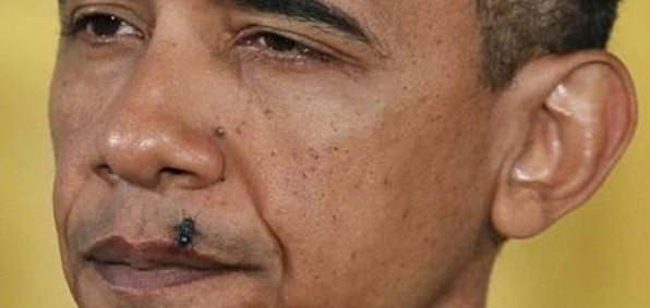 President Obama with a fly on his lip