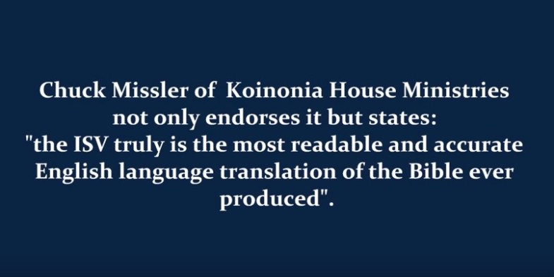 I understand that the ISV Bible is the one Chuck Missler used, is that right? Never heard of it.