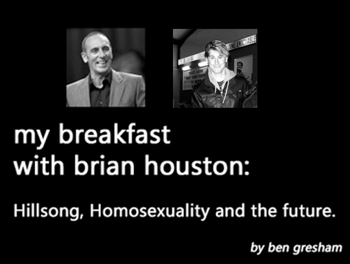 A blog entry on my breakfast with the Senior Pastor of Hillsong Church, Brian Houston. This entry shares Brian’s thoughts on homosexuality, gays in church, the future of the church and dealing with the whole ‘gay issue’.