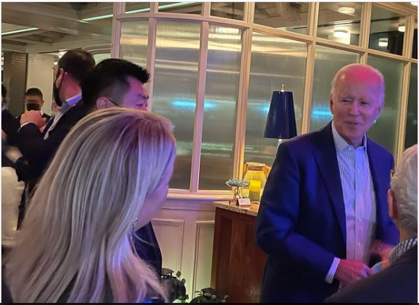 President Joe Biden was caught on video not wearing a mask while walking inside of a swanky restaurant in Washington, D.C. – violating the city’s face mask mandate.
