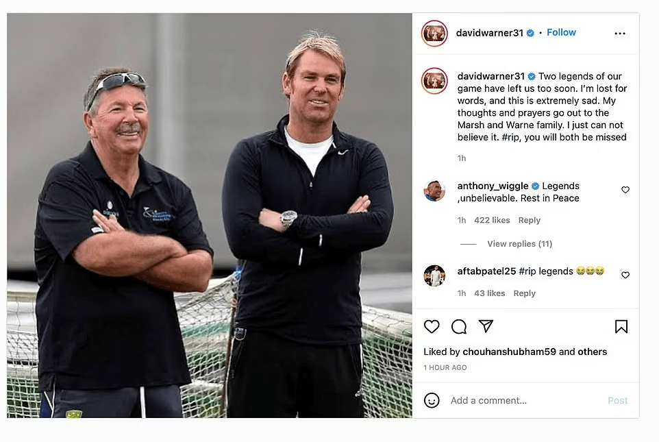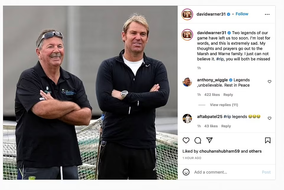 Warne’s death was announced just 12 hours after he tweeted his shock and grief at the death of Australia’s great wicket keeper Rodney Marsh, who also died this morning following a cardiac arrest.