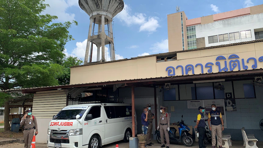 Police examine the scene. Source: Royal Thai Police via Matichon online