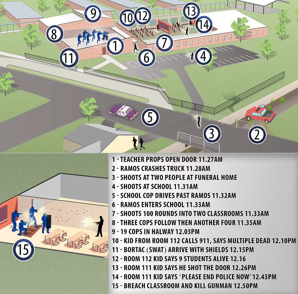 TIMELINE OF UVALDE SHOOTING – COPS WAITED OUTSIDE THINKING EVERYONE IN CLASS WAS DEAD WHILE SHOOTER FIRED MORE ROUNDS