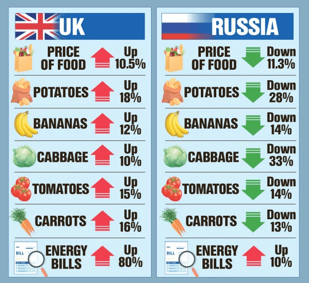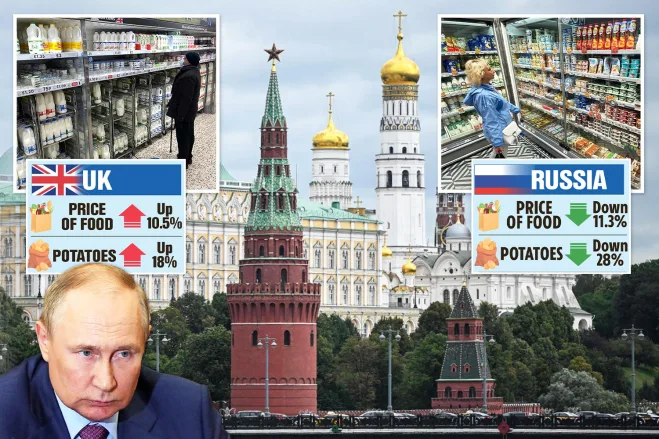 But it is a very different picture in Moscow where, since the start of the year, the price of food has dropped 11.3 per cent.
