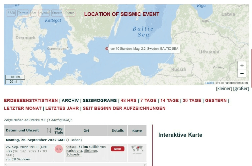 It could be an explosion in the area, which corresponds approximately to the damage site of the pipelines.