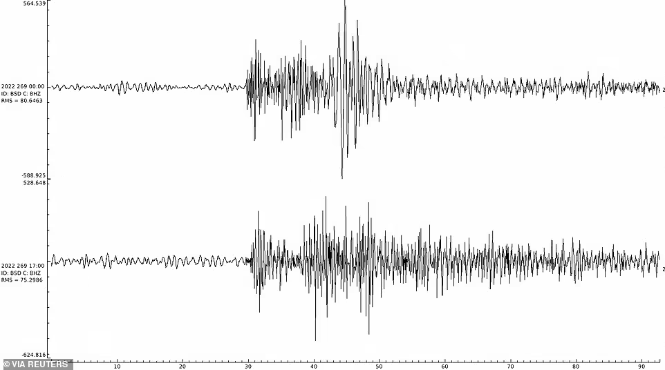 It comes after shocking footage released earlier today by the Danish military from a flyover of the affected region showed huge swathes of the sea near the Danish island of Bornholm churning as the gas bubbled to the surface.