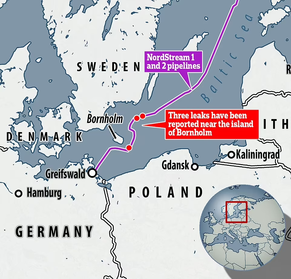 Western leaders have blamed ‘deliberate’ sabotage after the Nordsteam pipe from Russia suffered ‘unprecedented’ damage off Sweden – causing 3000ft-wide bubbles in the Baltic Sea and causing prices to spike.