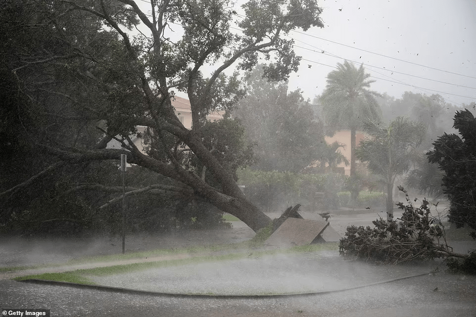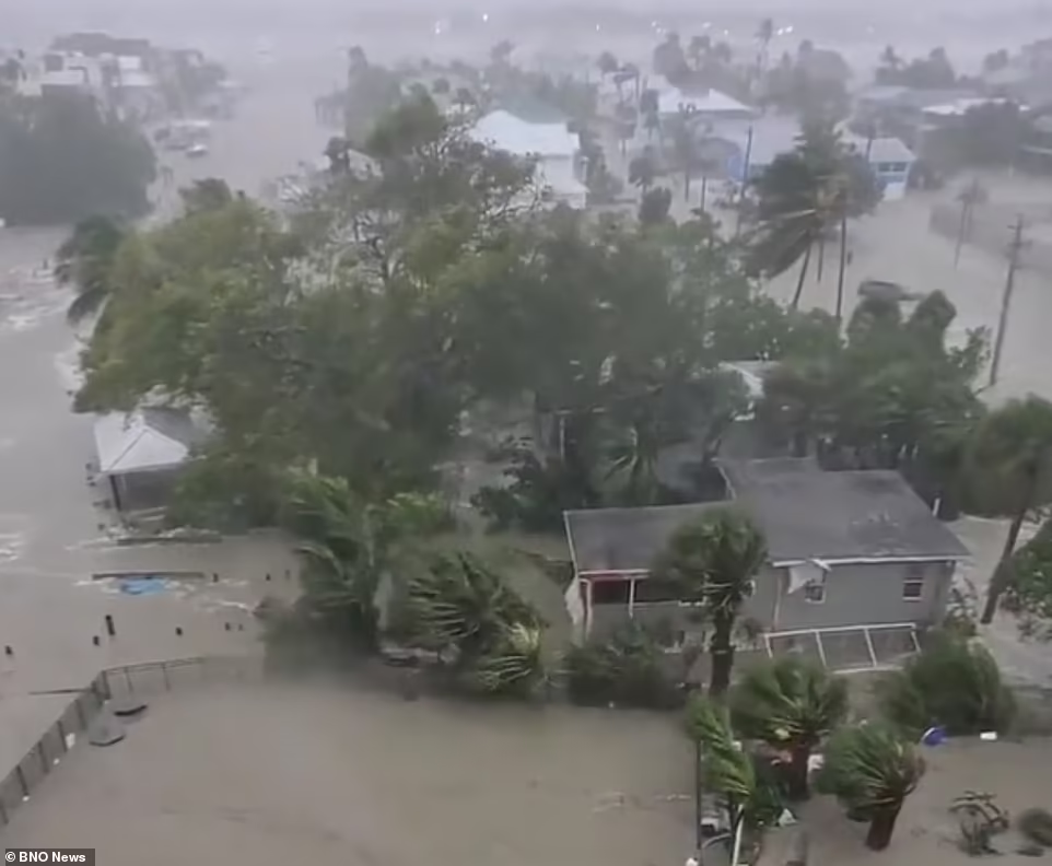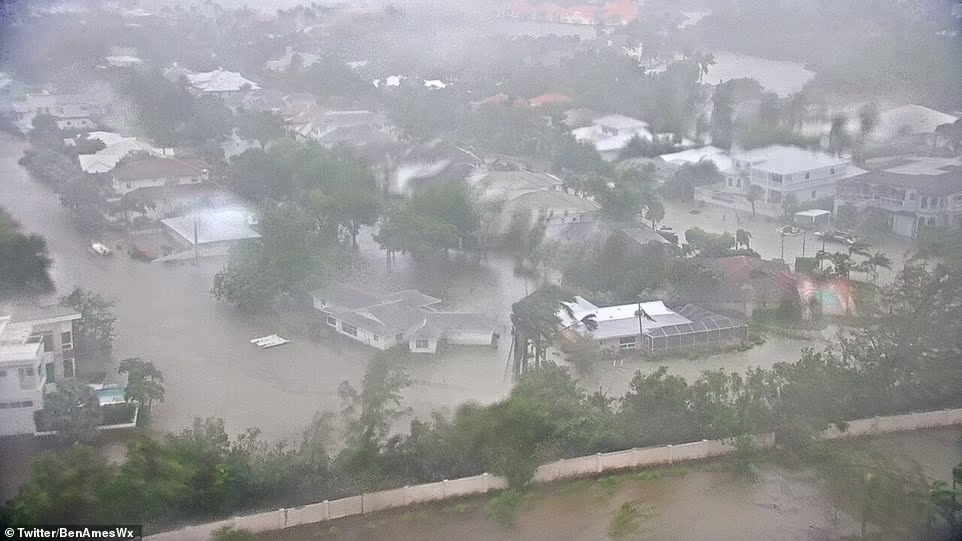 Meanwhile Naples and Sanibel Island were also rocked by the ‘historic’ hurricane, with houses overwhelmed by water, debris flung through windows and some even ripped from their hinges by historic flooding.