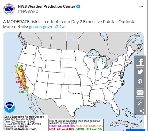 Extreme weather continues to bombard swathes of California as a new storm threatens another onslaught of rain, snow and wins today as an atmospheric river that caused major flooding moves east.