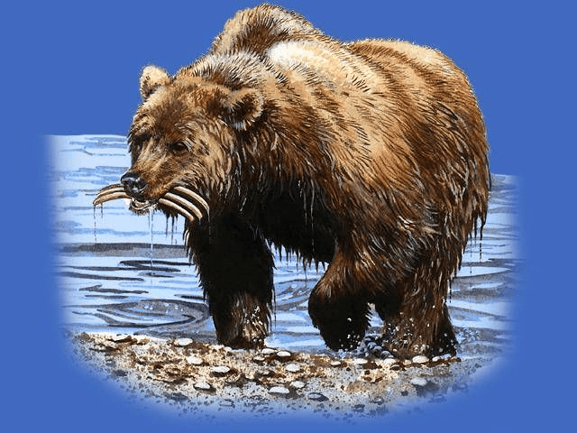 It then began to grow. Soon it was larger than the forest floor and as it grew larger it continued to become angrier. It then began to paw the ground, so that when its paw would hit the ground, the earth would shudder. The bear continued to devastate all that stood in its path until it came upon some men with sticks trying to fend it off.
