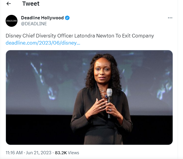 She said: “To our extended DEI and HR team, I’m writing to share the news that Latondra Newton has decided to leave The Walt Disney Company to pursue other endeavors.