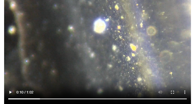 The entire drop was moving towards the center, clearly coordinated intelligently to build a large hydrogel like clot. In this video you can see 100x magnification with clear movement. It looks just like Insulin that I filmed.