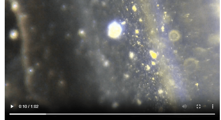 Larger pieces of hydrogel can be seen moving in the extremely busy background