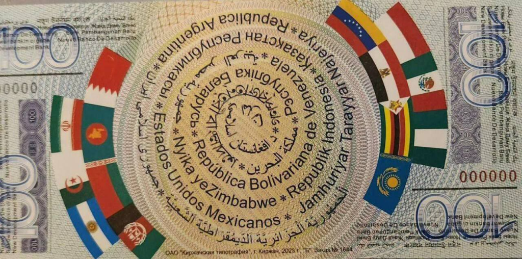 In his hand, in the image below, you will see the BRICS Bank Note: