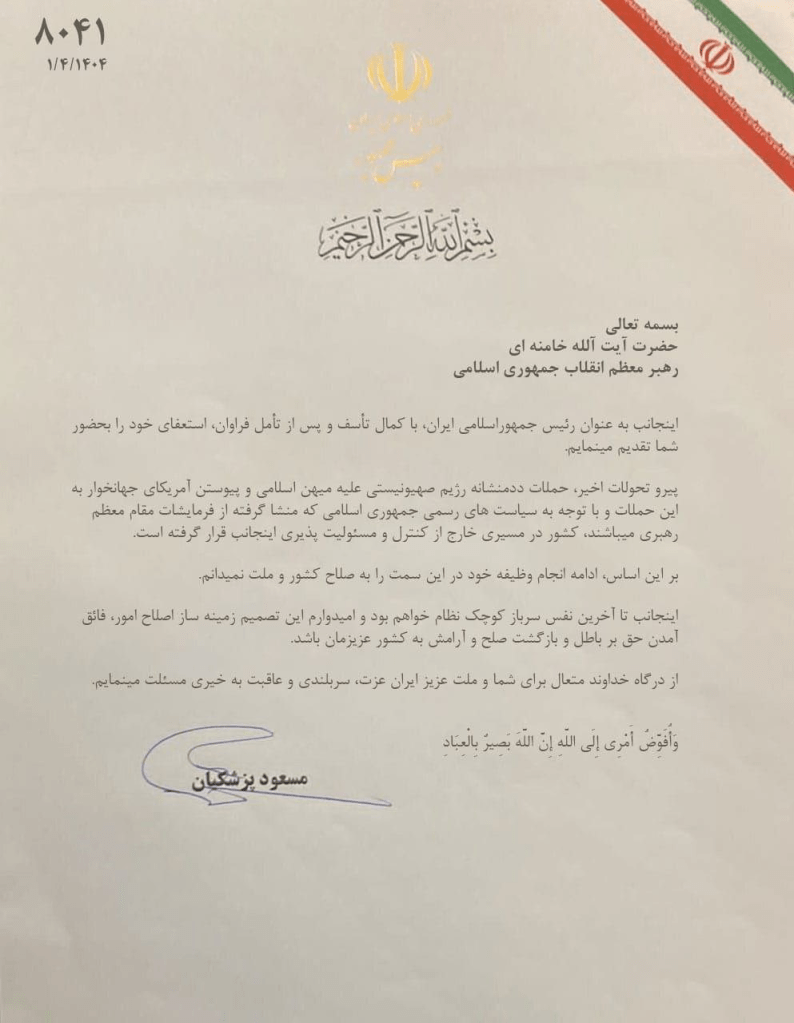 The President of Iran, Masoud Pezeshkian, has RESIGNED. His letter of resignation, sent to the Ayatollah Khamenei, has been translated from Persian into English, and the reason he cites for leaving – is extremely worrisome.